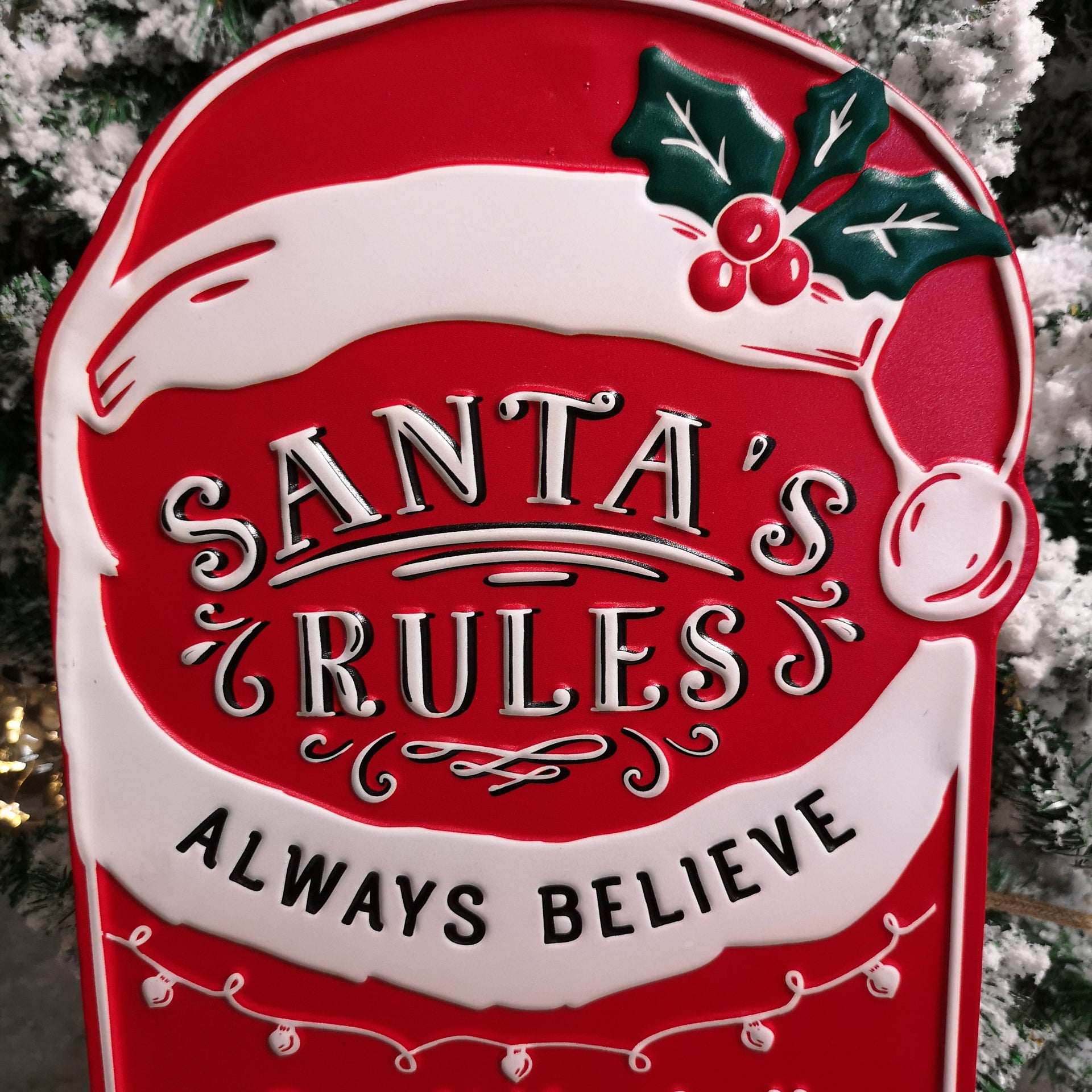 - 68cm Indoor Outdoor Red Metal Santa's Rules Sign Hanging Christmas Decoration