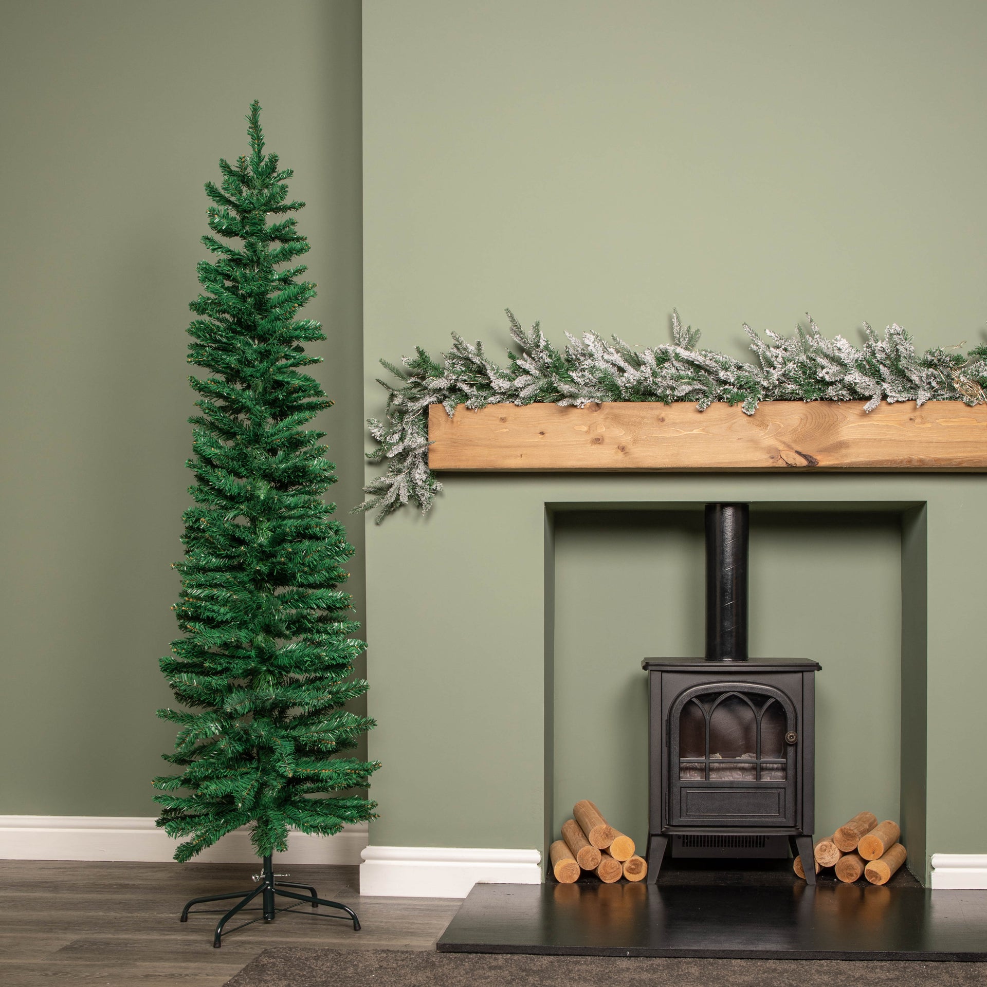 6ft (1.8m) Green Artificial Pencil Christmas Tree With Green Metal Stand and 321 Tips