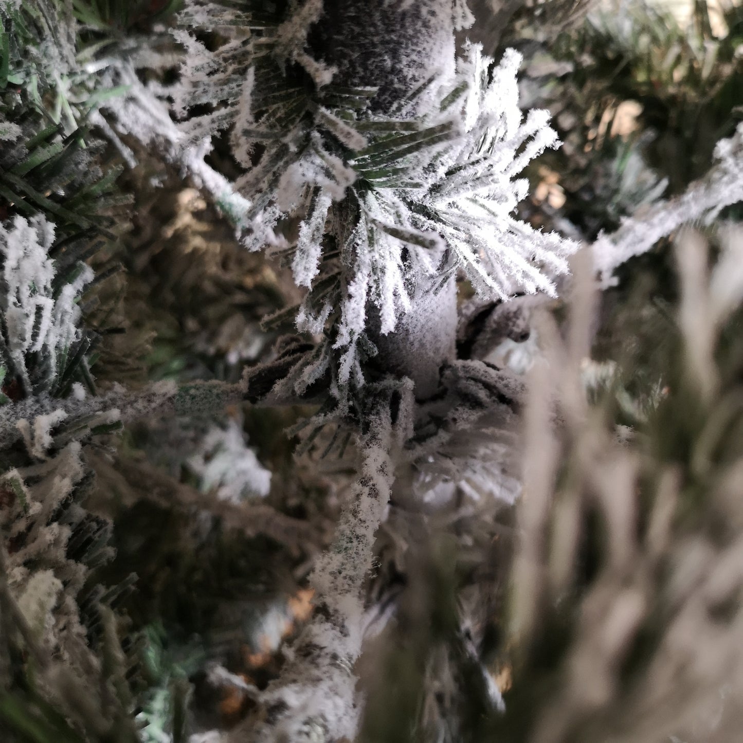 - 6ft (1.8m) Premier Flocked Woodcote Spruce PVC Hinged Christmas Tree