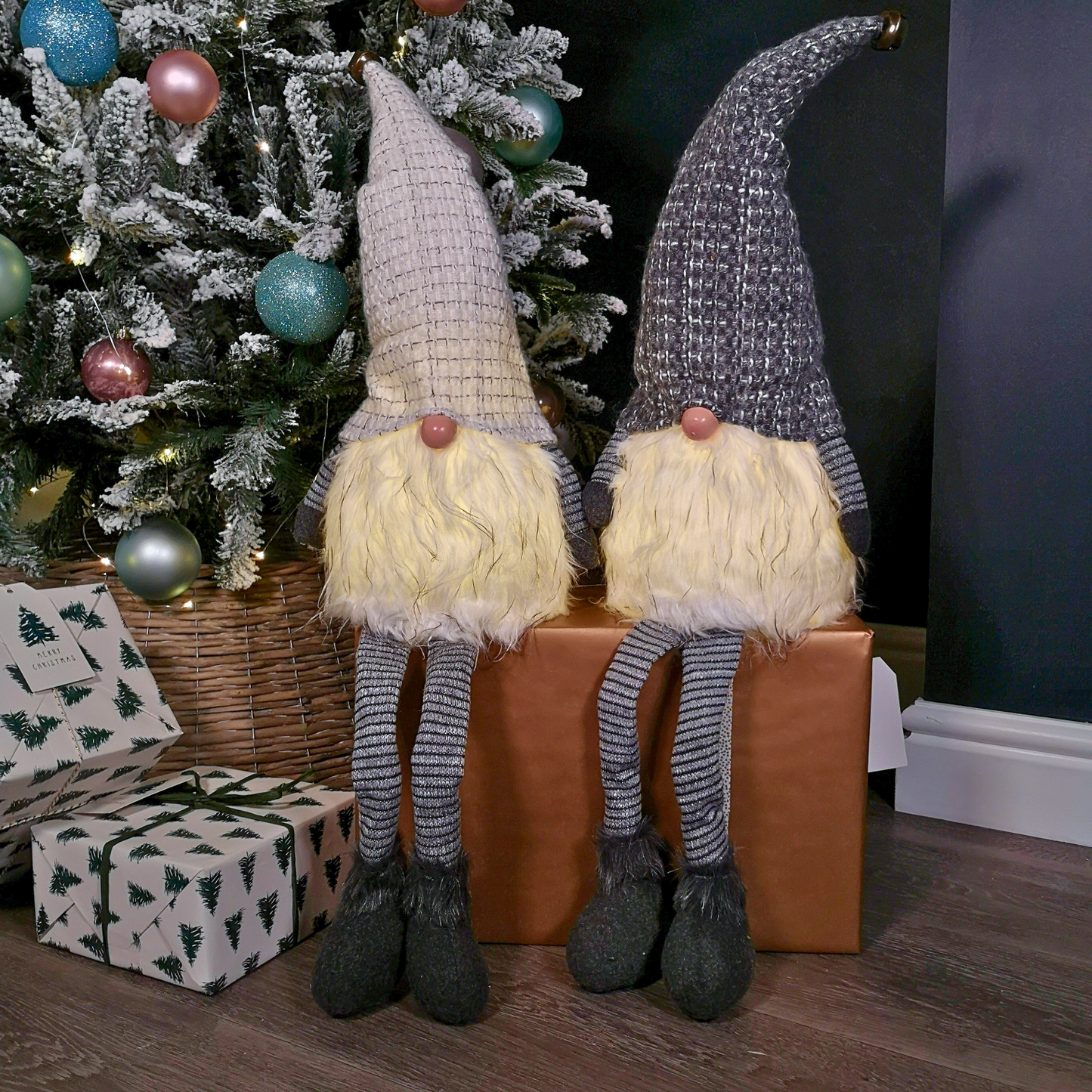 - 79cm Battery Operated Christmas Gonk with Dangly Legs Decoration in Light Grey