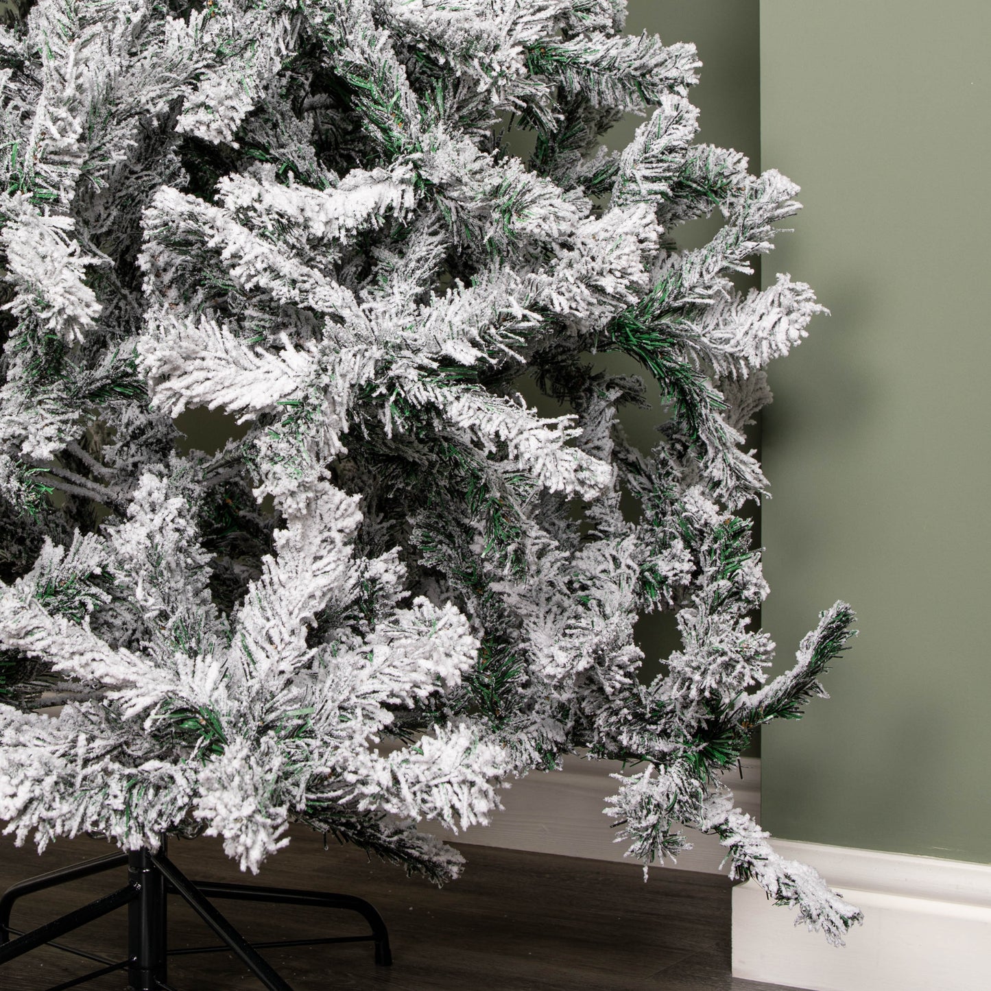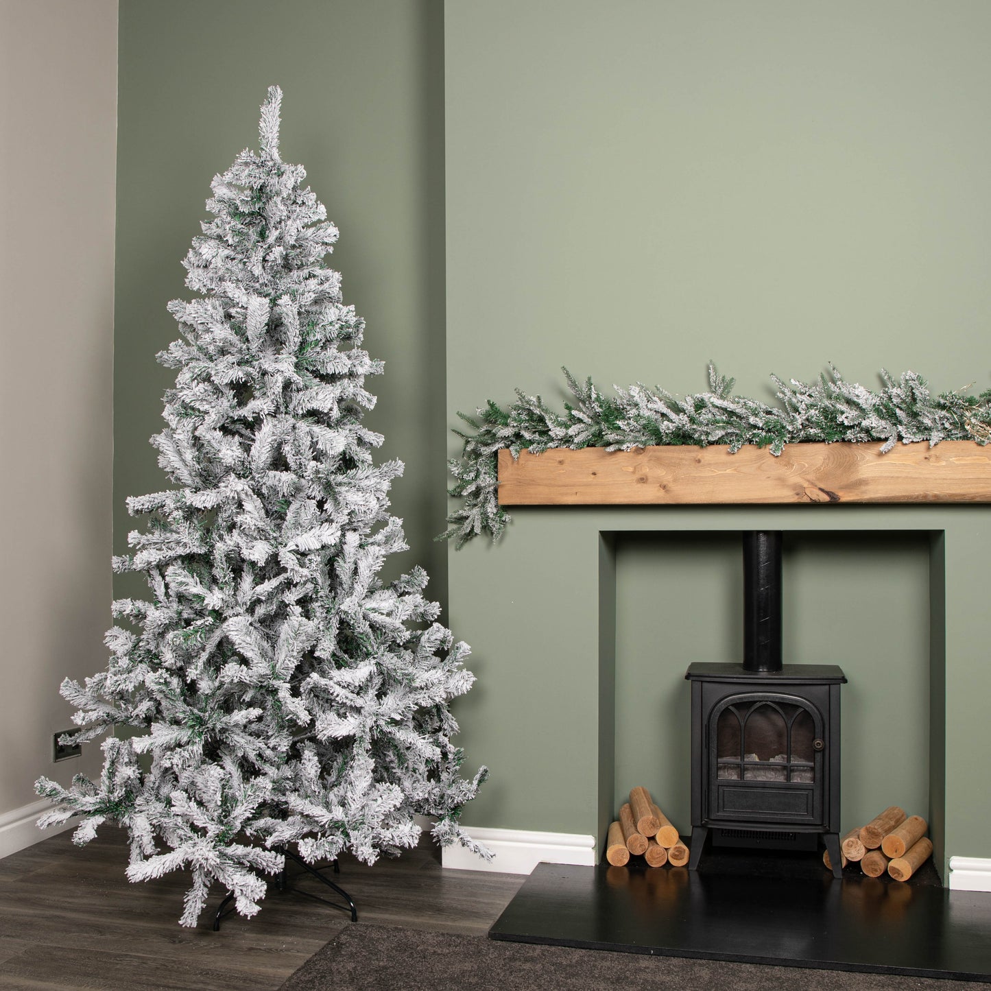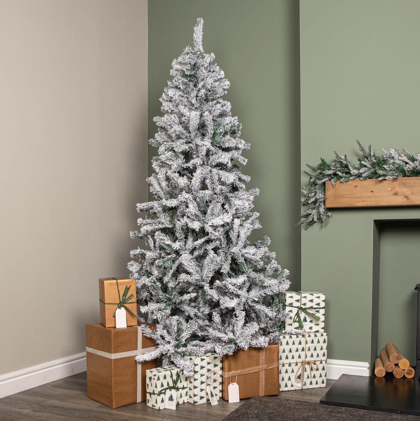 Make a grand statement this year with this 7ft Snow flocked Christmas tree. This artificial tree is the perfect choice for any display, whether it's by the fireplace, in the window or on show in the hallway this is sure to bring the festive cheer to your home and those who visit this Christmas time even Santa himself! Bringing trees indoors has traditionally been used to celebrate winter festivals for thousands of years with the symbol of spring is around the corner. Standing at 7ft tall, (2.1m) this tree provides plenty of room to hang decorations and lights. Made of PVC, the tree is snow flocked giving the look of fresh fallen snow for a wintry feel. The tree comes in sections and has 655 tips with PVC hinged branches allowing you to create a fuller look. With a Green metal base stand, the stand easily folds down allowing for easy storage. Suitable for indoors only. Please note the branches will require to be fluffed/rearranged to achieve the full look as in our images. Product Dimensions Height: 7ft (2.1m) Width: 115cm (at the widest point) Metal stand: 56cm