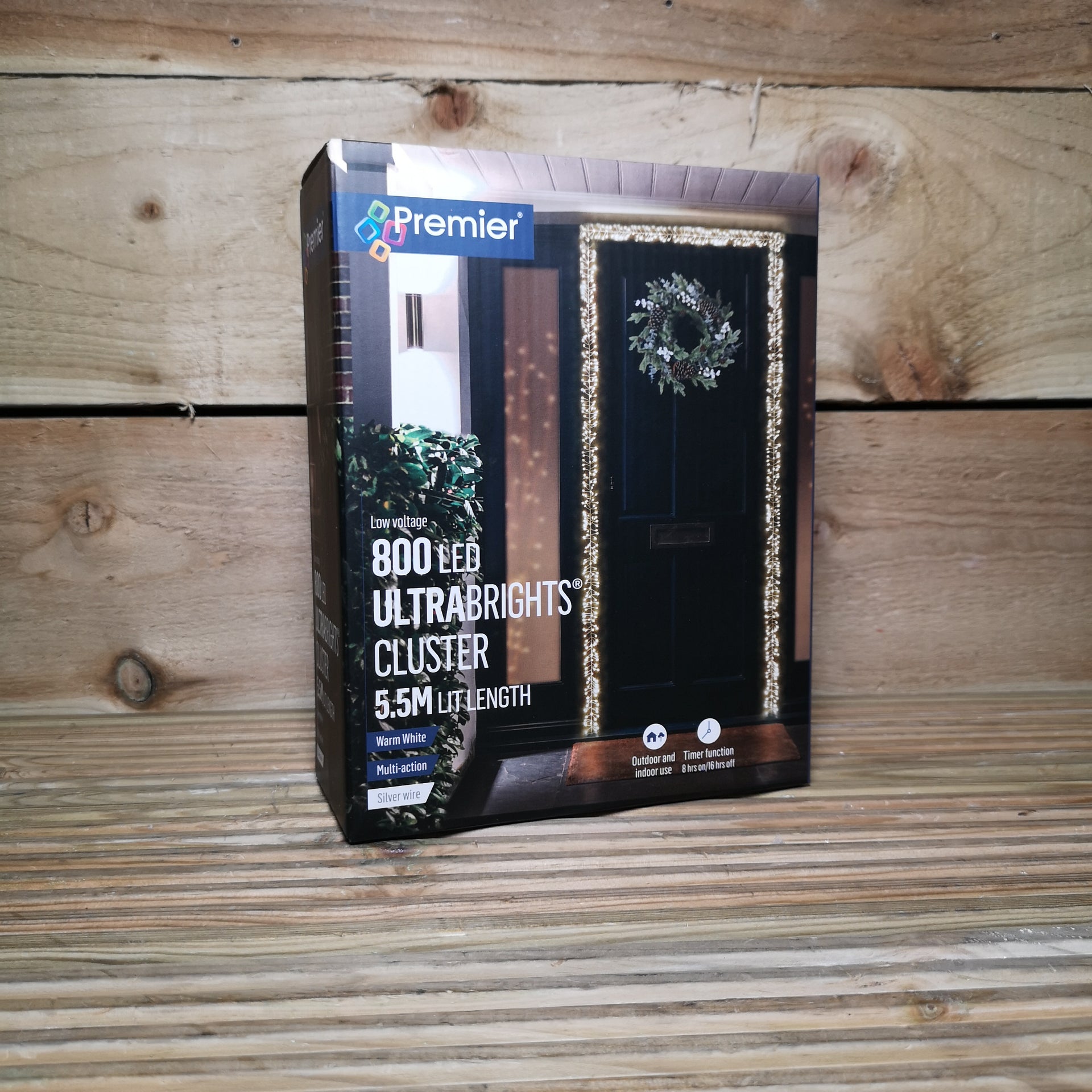 - 800 LED 5.5m Premier Christmas Indoor Outdoor Wire Cluster Lights with Timer in Warm White