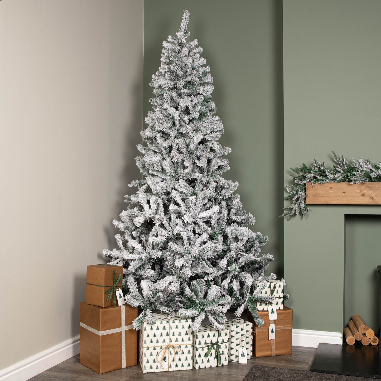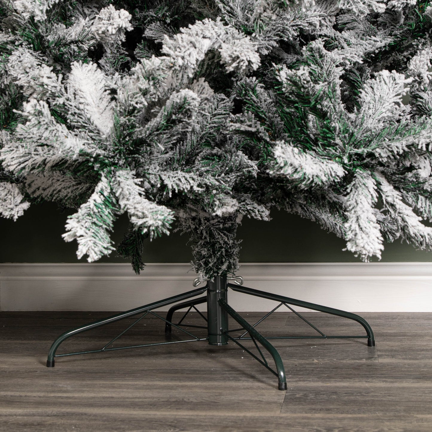 8ft (2.4m) Snow Flocked Artificial Christmas Tree with Green Metal Stand and 1017 Tips