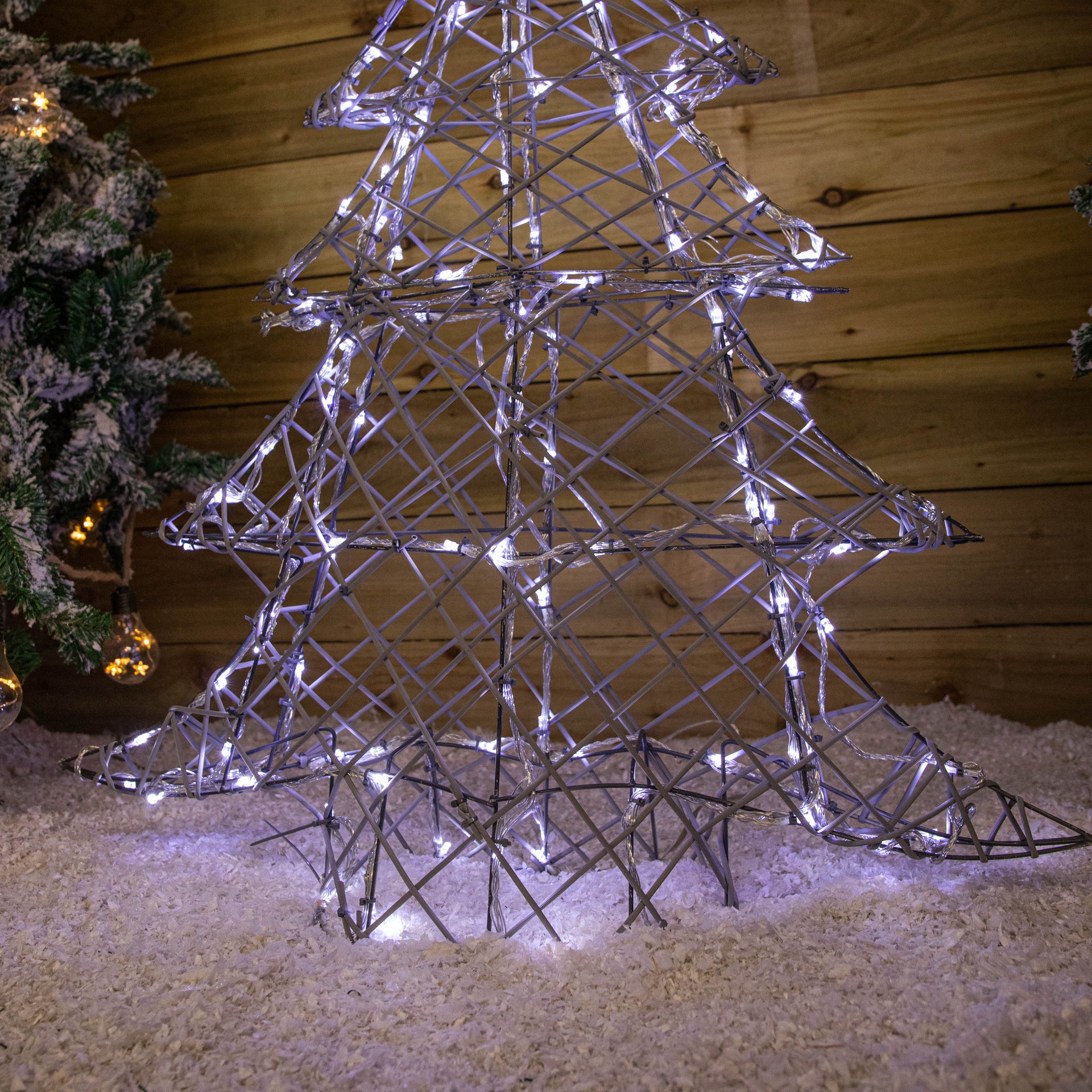 90cm Light up Grey Rattan Christmas Tree with 120 White & Warm White LEDs