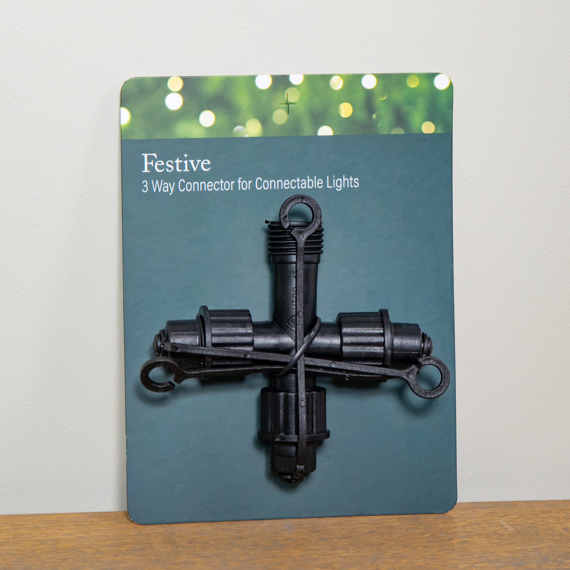 Expand your festive lighting display with ease using this 3 Way Connector - Connectable Max. Designed specifically for use with Festive's Connectable Max lighting range, this essential accessory allows you to power and branch up to three separate light runs from a single power source.