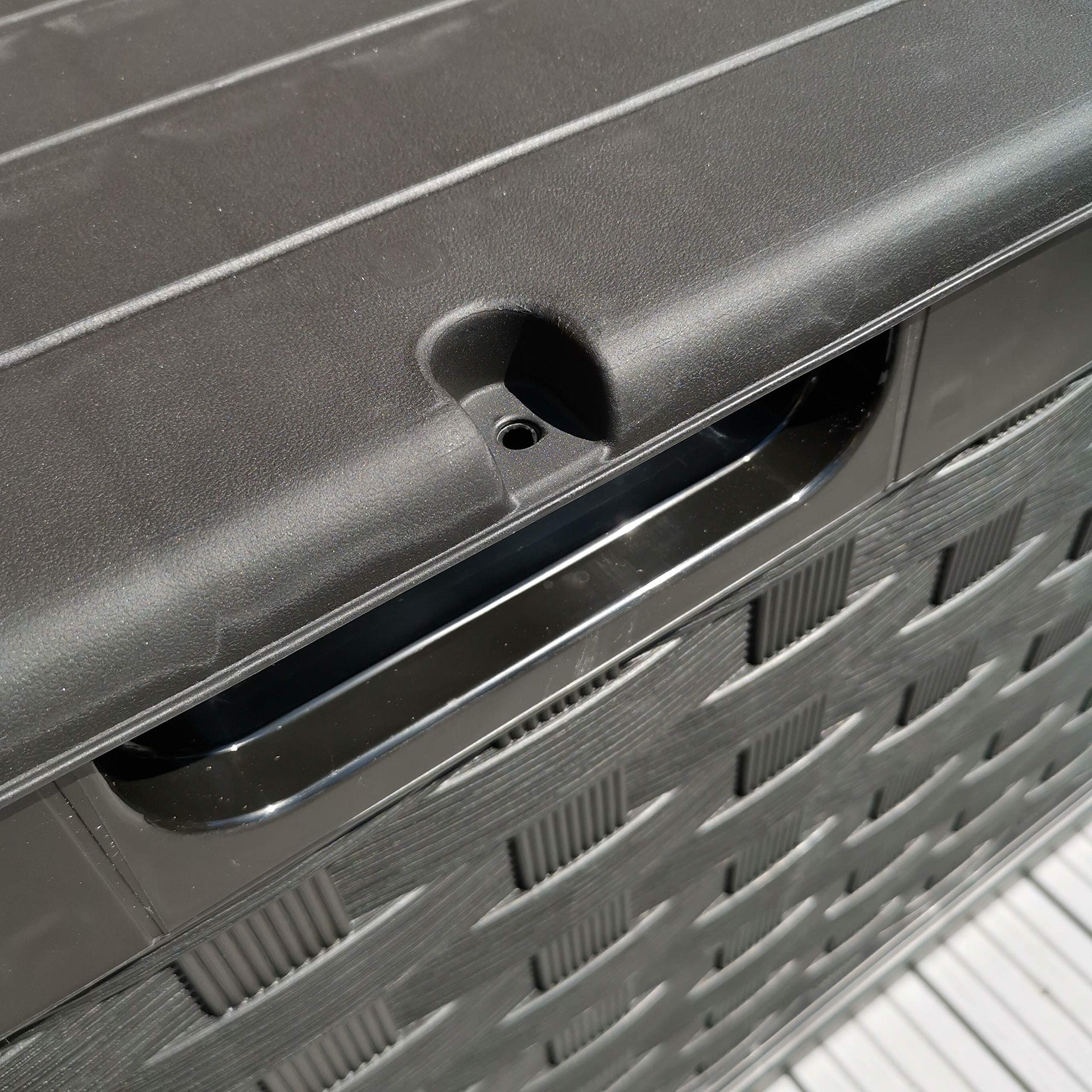 Factory Seconds: 335 Litre Rattan Style Garden Cushion Storage Box with Sit on Lid – Black