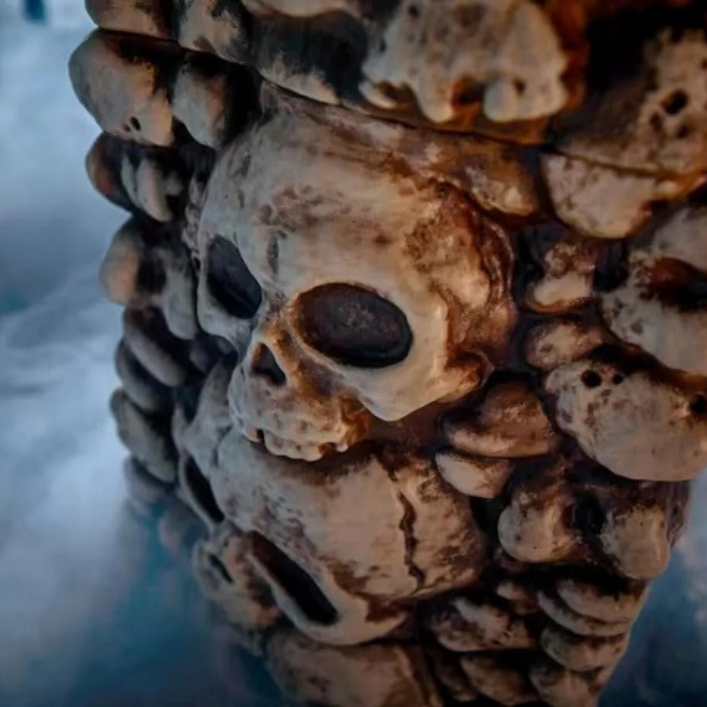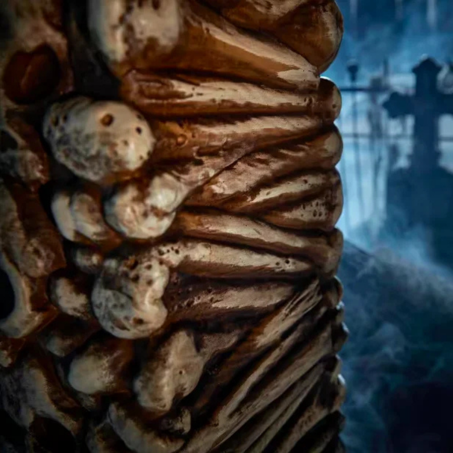The archway is adorned with a detailed, chilling design featuring skulls at the top and skeletal bones wrapping around the structure. This classic Halloween motif adds a gothic and creepy touch to your decor, making it the perfect entrance for any spooky event. This archway sets the perfect Halloween vibe, creating a foreboding atmosphere as it welcomes guests into your haunted world. The skulls perched on the arch and the bones that lines the stricture creating a chilling entrance to any Halloween themed display.