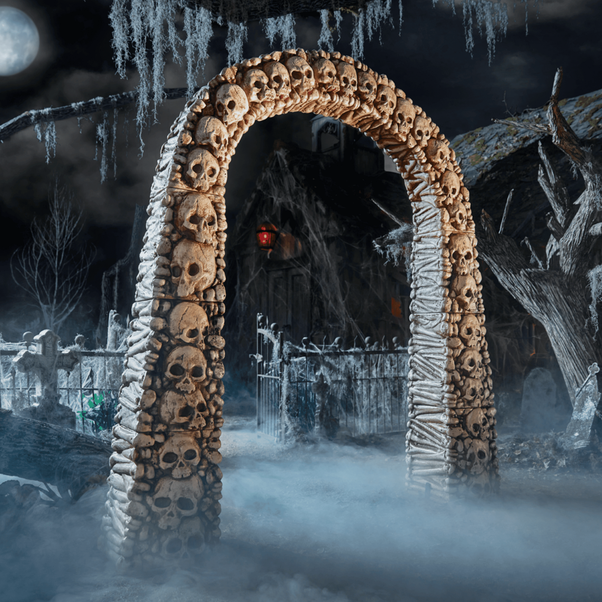 At 7.5ft, this grand archway makes a bold statement and serves as a striking focal point for your Halloween display. Its size ensures that it's visible from a distance, giving your home a dramatic haunted appearance with its eerie skull and bone design, this archway sets the perfect Halloween tone. Its towering height and detailed design will leave a lasting impression on anyone who passes through it.