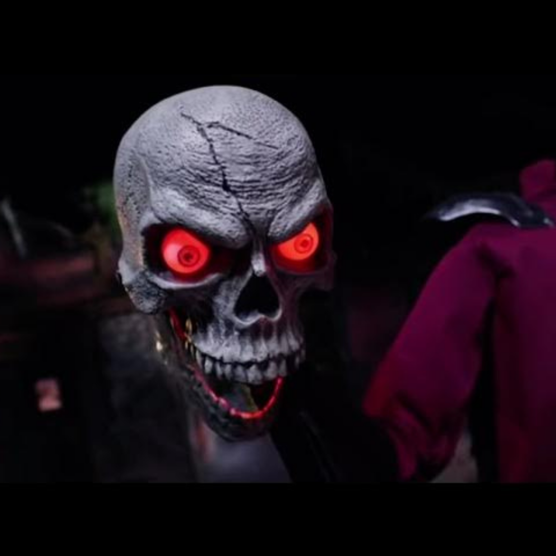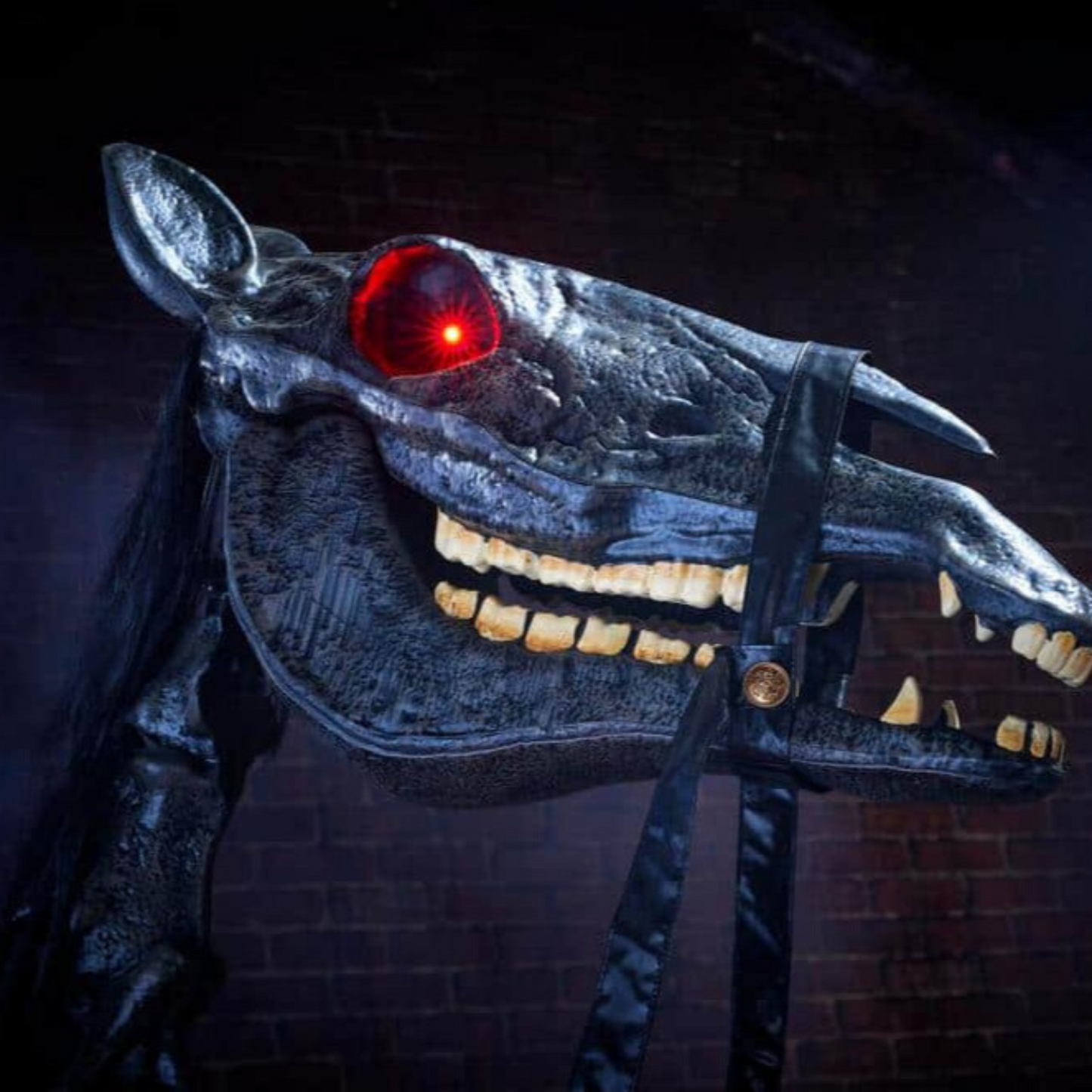 Featuring the legendary Dullahan, a mythological headless horseman from Irish folklore, who is often portrayed as a terrifying figure riding across the night, holding his severed head in his hands, this Knight brings that legend to life in your own home with stunning LED lights, animated movements and an eerie glow for a captivating display.