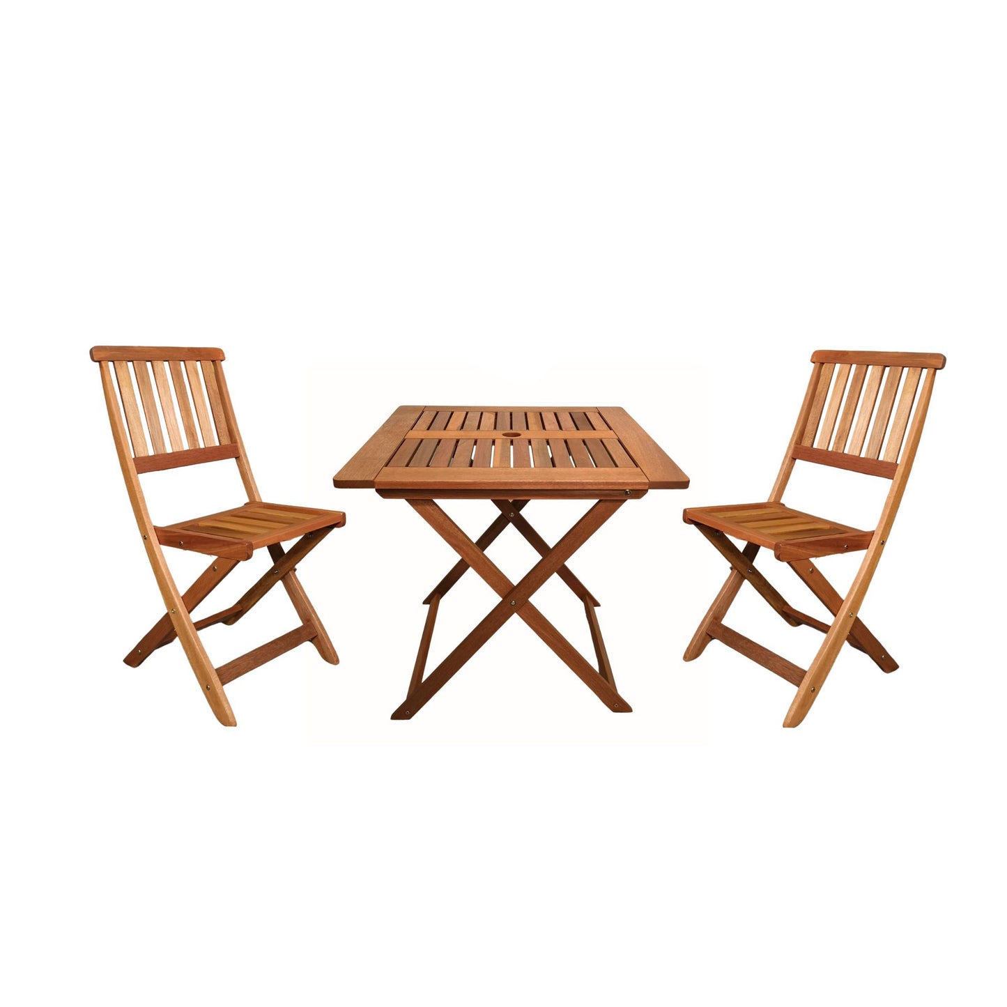 Outdoor 2 Person Folding Square Wooden Garden Dining Table Chairs Set