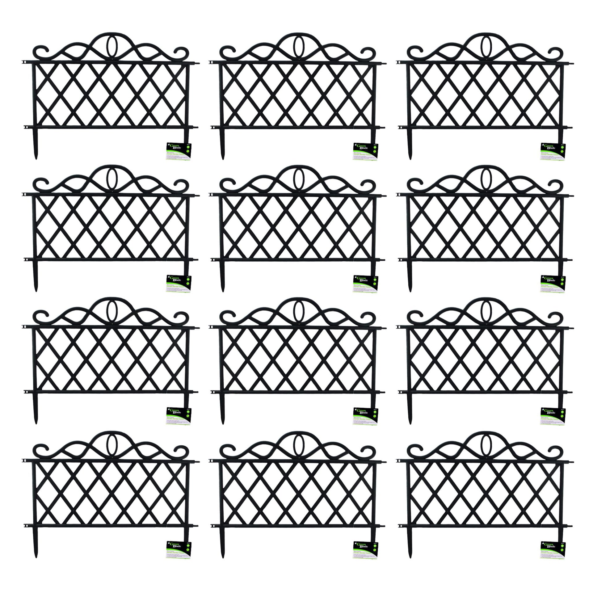 Pack of 12 27cm Black Plastic Garden Patio Lawn Border Fence Edging