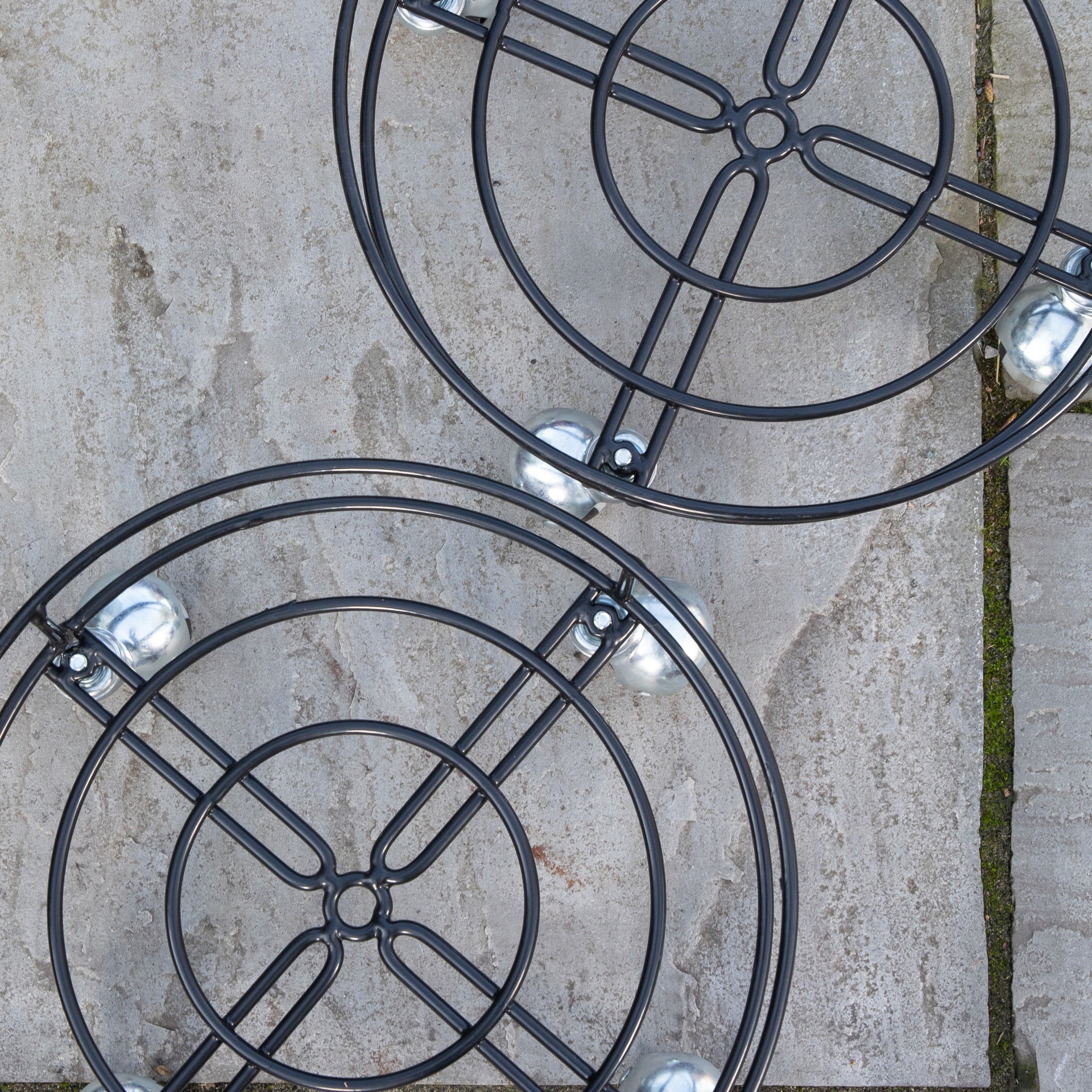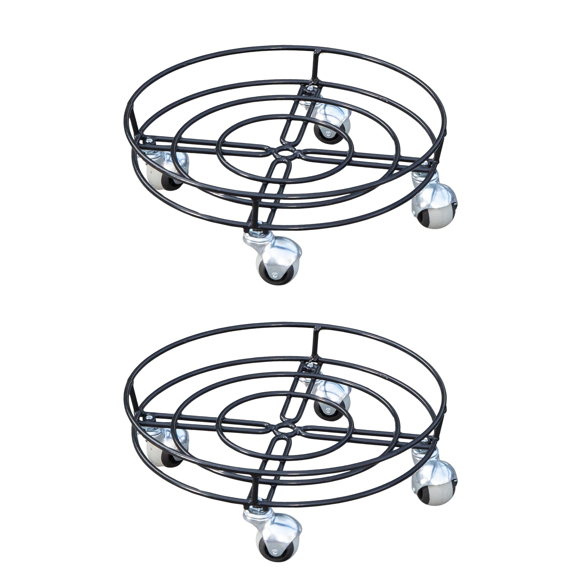 Crafted from high quality black metal, this heavy duty plant trolley offers exceptional strength and long lasting performance. The construction is complemented by a decorative circular design, making it not only functional but also an attractive addition to your garden décor. Its double rim structure provides enhanced stability and support.