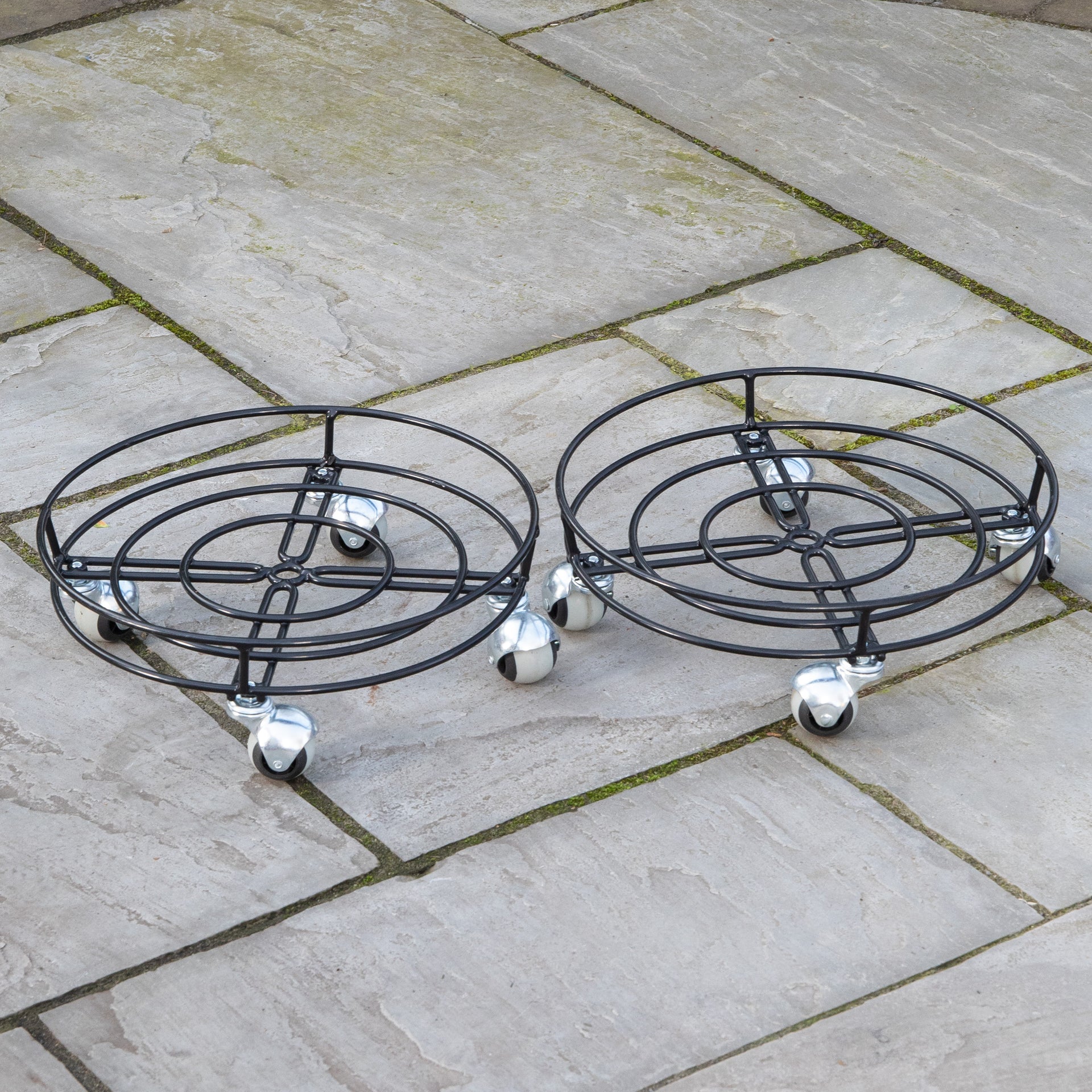 Take the hassle out of lifting and rearranging heavy planters with this pack of two 37cm Black Metal Heavy Duty Plant Pot Trolley on Wheels. Designed for smooth movement, this reliable plant pot mover lets you effortlessly glide large pots across patios, decking, and indoor spaces. With its sturdy steel construction and elegant circular design, it’s a practical yet stylish addition to any garden setup.