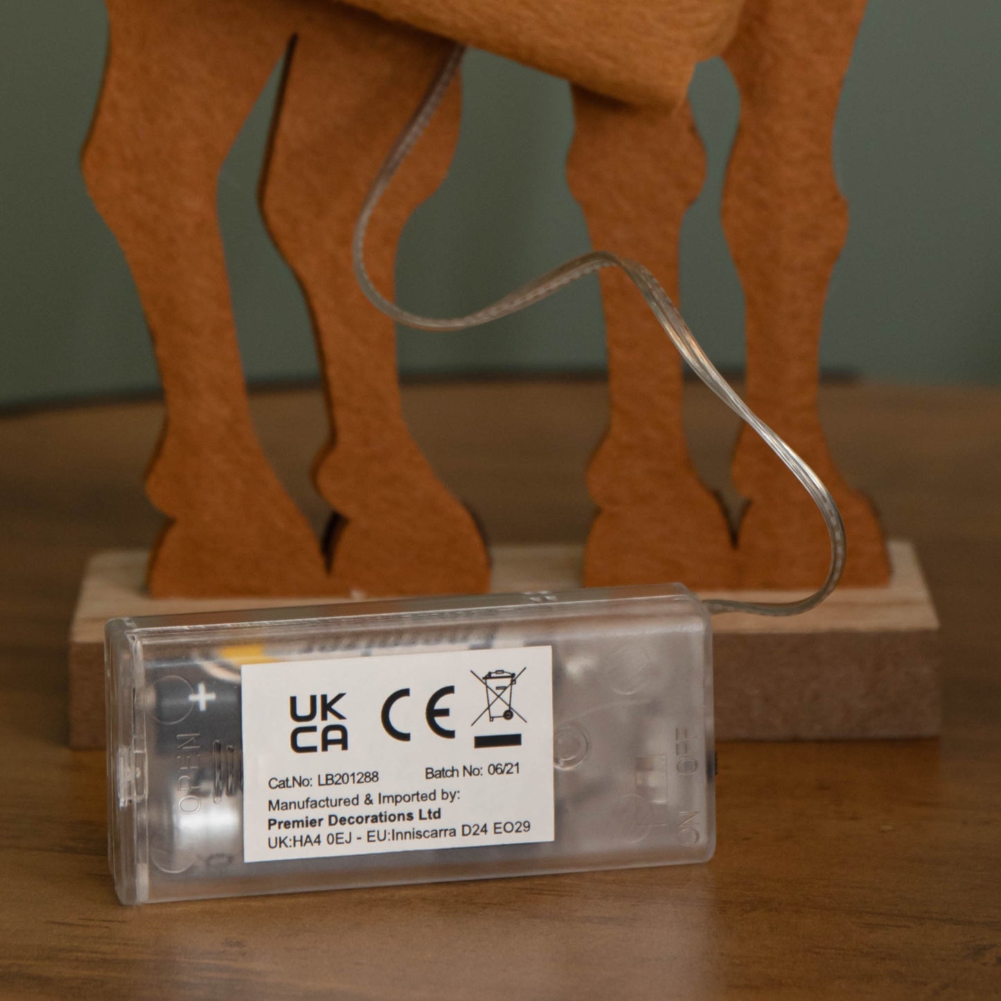 32cm Battery Operated Light up Felt Reindeer with Santa Hat and Warm White LEDs
