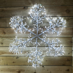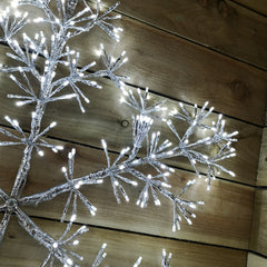 - 90cm Light up Silver Starburst Christmas Snowflake Hanging Decoration with 660 White LEDs