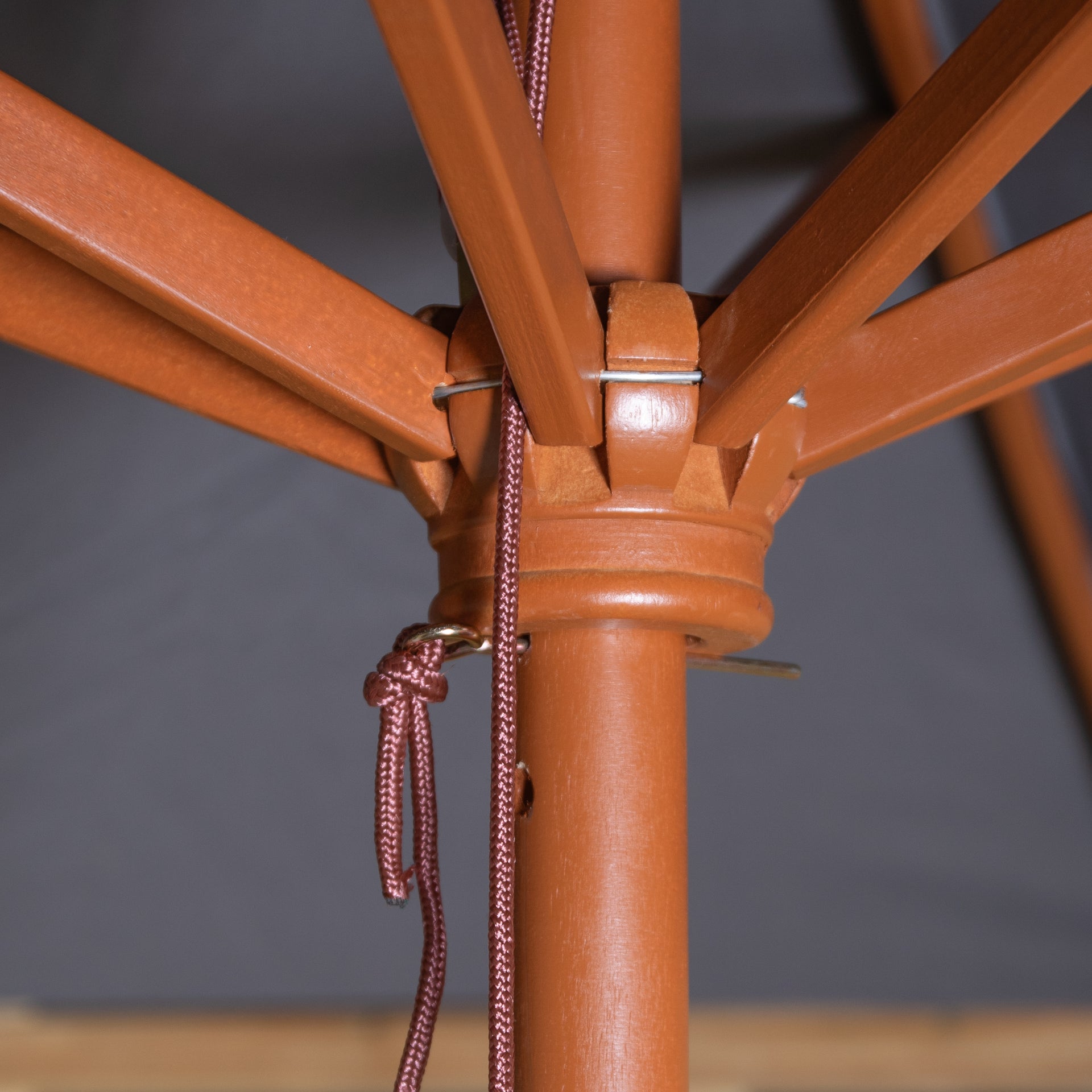 Built with strength and style in mind, this outdoor wooden parasol has a sturdy wooden centre pole with a 38mm diameter, complemented by strong wooden ribs for added support and stability. The natural wood frame gives this wooden garden umbrella a classic and elegant appearance that suits a wide range of outdoor settings.