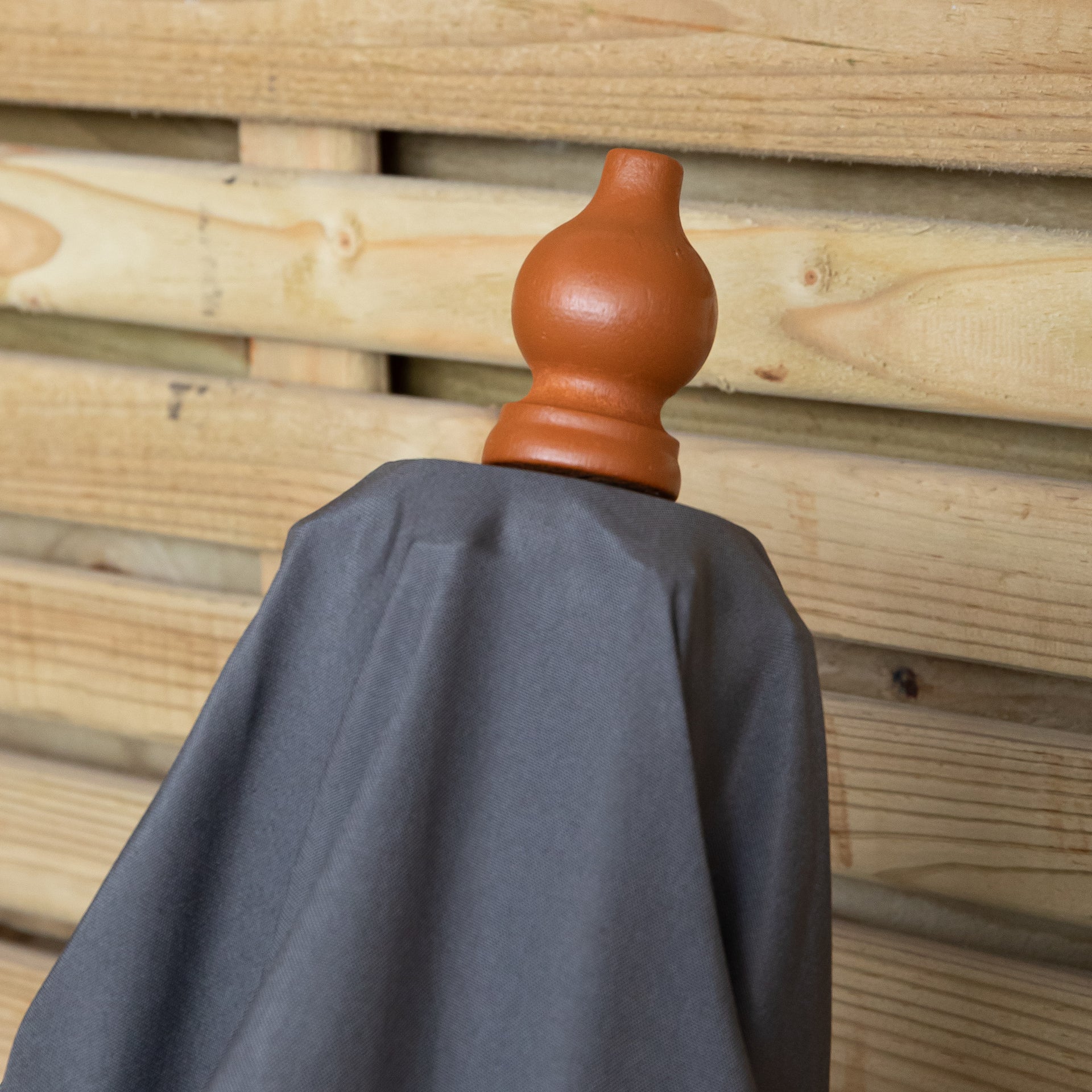 The 2.7m garden parasol features a high quality grey polyester canopy made from durable 180g fabric, providing effective UV protection to help shield you from the sun during warm summer days. The wide 2.7 metre canopy creates ample shade, making it ideal for garden tables, seating areas or relaxing outdoors.