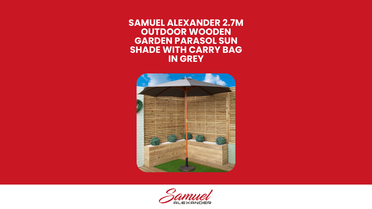Enjoy stylish and reliable shade in your outdoor space with the Samuel Alexander 2.7m Outdoor Wooden Garden Parasol Sun Shade with Carry Bag in Grey, designed to combine classic looks with everyday practicality. Perfect for patios, gardens, terraces and outdoor dining areas, this large garden parasol offers generous coverage and a timeless natural finish.
