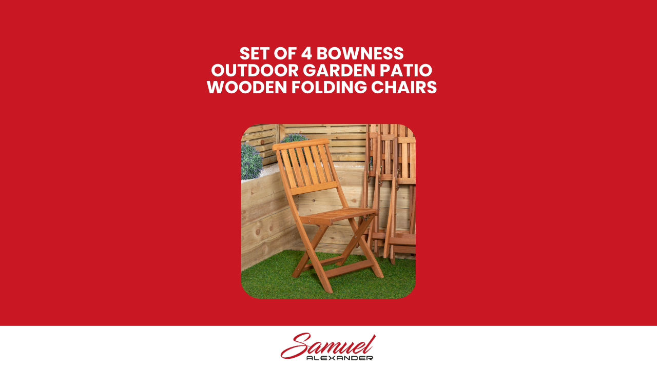 Enhance your outdoor living space with the Set of 4 Bowness Wooden Folding Chairs. Crafted to offer the perfect blend of simplistic yet contemporary style and everyday practicality. These chairs add a touch of natural elegance to any setting, ideal for the balcony, patio, garden, terrace, conservatory or outdoor dining area. Whether you're relaxing with a morning coffee or hosting guests, these chairs deliver a comfortable and supportive seating experience.