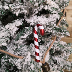 Deck the halls this Christmas with this set of attractive stripe candy cane sweet tree decorations. This hanging decoration will make a perfect addition to any room and is suitable to be hung around your indoor space, whether you hang them on the Christmas tree, a wreath or a Christmas garland. With a Red and White stripe design, these decorations are made from Glass and is sure to bring the festive spirit to family and any visitors this Christmas time. The sweet decoration features a Silver hanging loop allowing you to place this anywhere you like. Dimensions Length: 12cm and 4cm Wide.