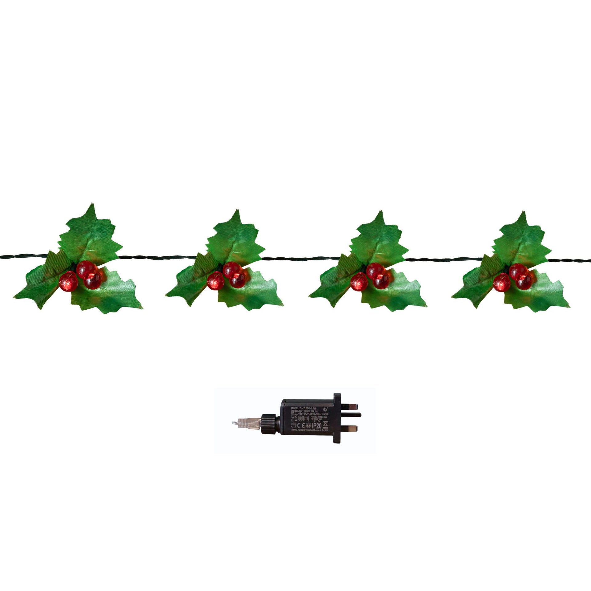 - Snowtime Indoor Outdoor 100 Christmas LED Red Berry And Holly Lights Green Cable