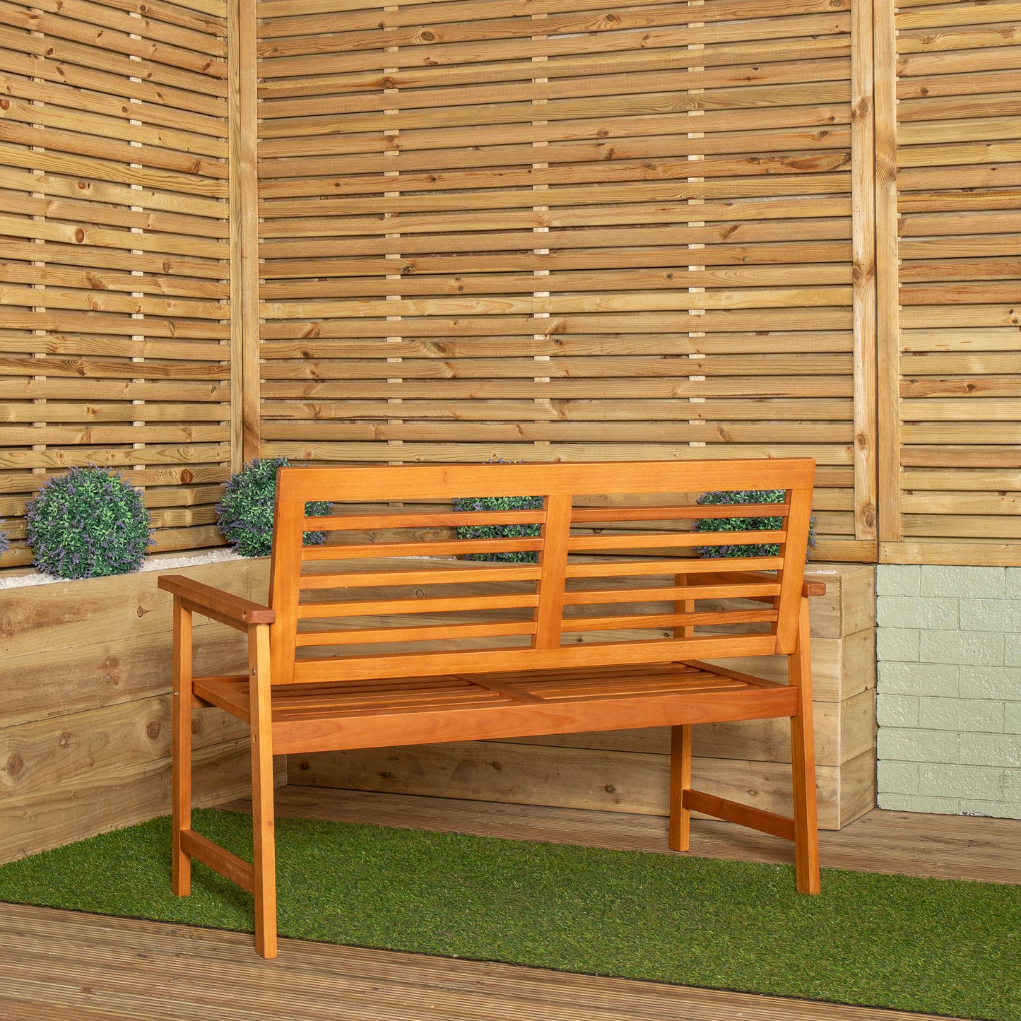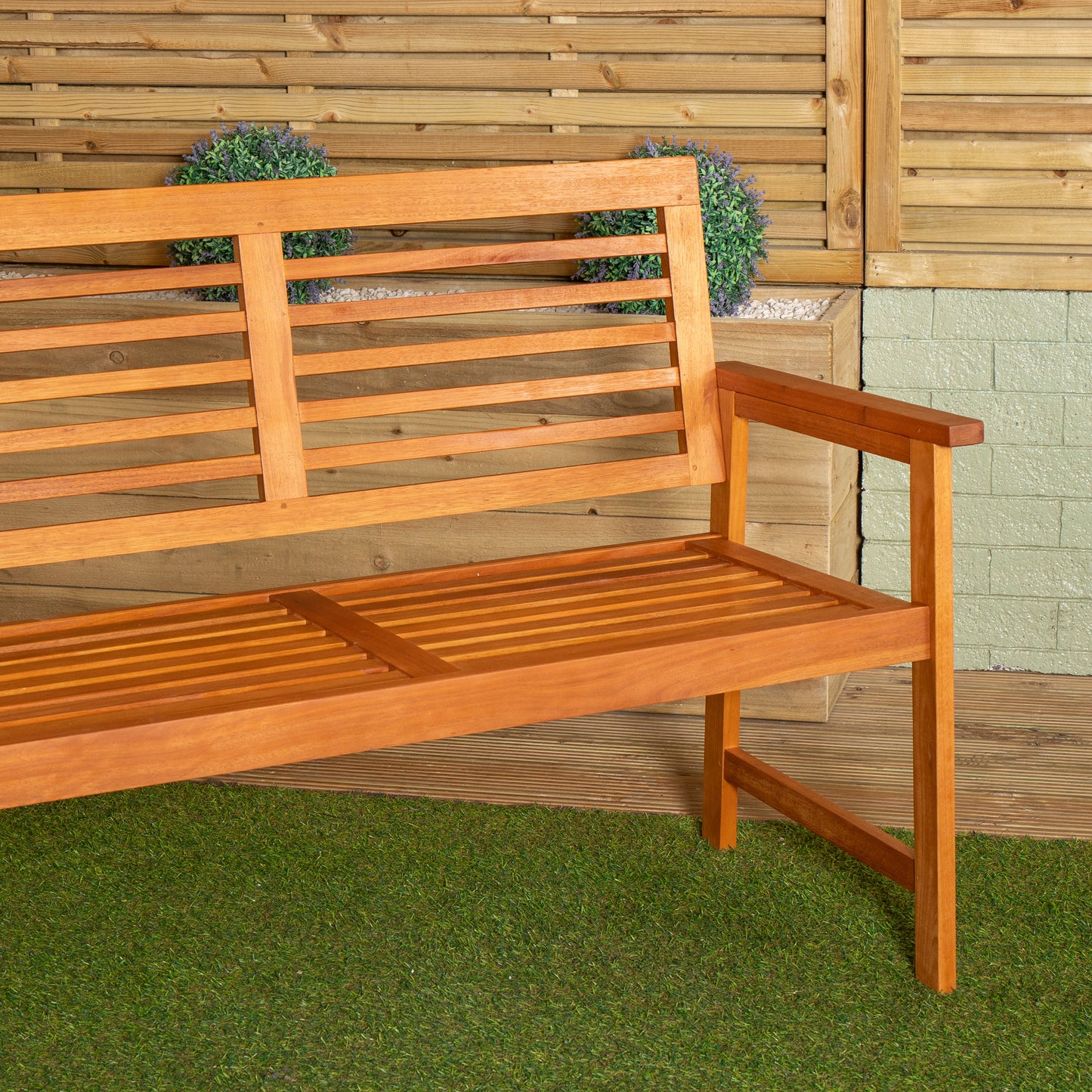 Crafted from Eucalyptus Grandis Wood and finished with a rich, protective premium wood oil. This bench showcases the warm, natural tones of eucalyptus whilst being durable and suitable for outdoor use. With style and comfort in mind, the slatted backrest and seat offer breathable support while adding a traditional, handcrafted look that suits any garden aesthetic.